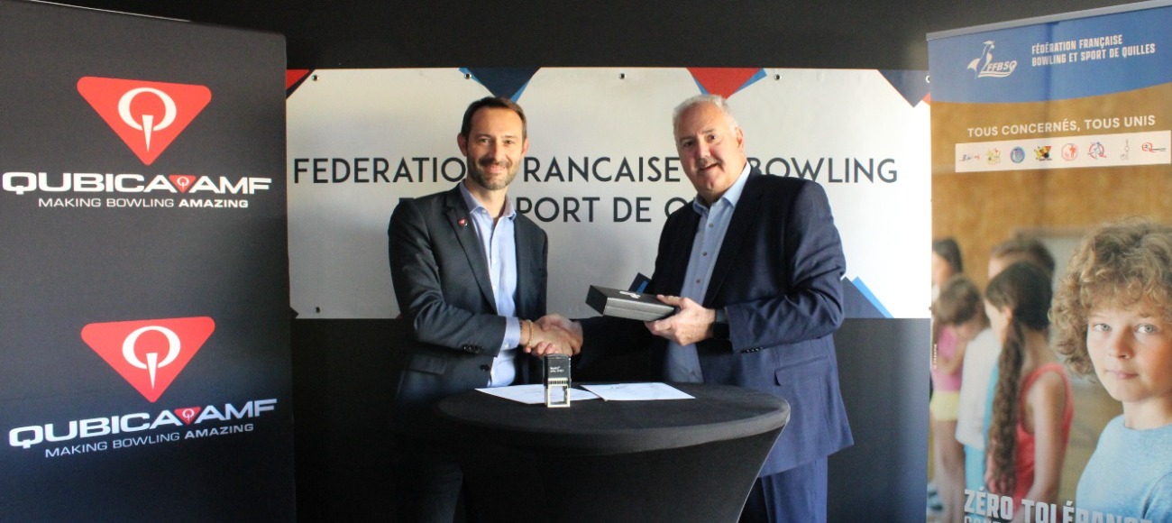 Vendredi 17 octobre 2025, en amont de la soirée d’inauguration du nouveau siège fédéral, la Fédération Française de Bowling et de Sport de Quilles (FFBSQ), représentée par Patrick HUNTER, son président, et la société QubicaAMF, représentée par Guillaume CHENE, directeur de la filiale France, ont renouvelé leur partenariat pour la saison 2025-2026, renouvelable pour deux années supplémentaires.