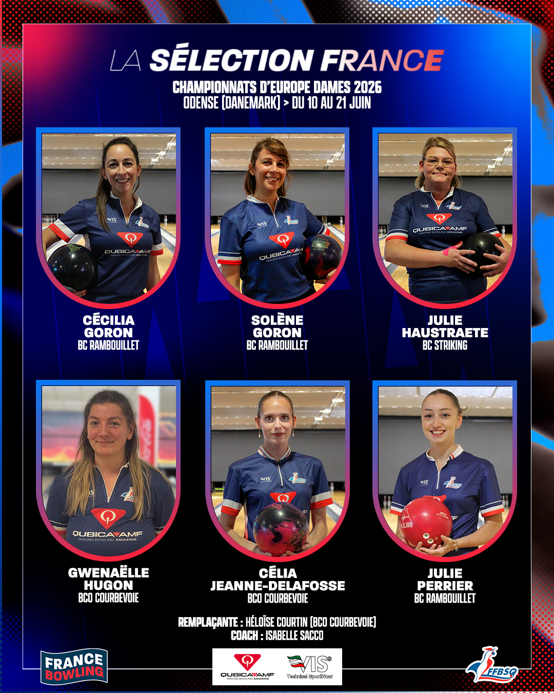 Découvrez les six joueuses sélectionnées pour les championnats d'Europe Dames qui se dérouleront à Odense (Danemark) du 10 au 21 juin 2026.