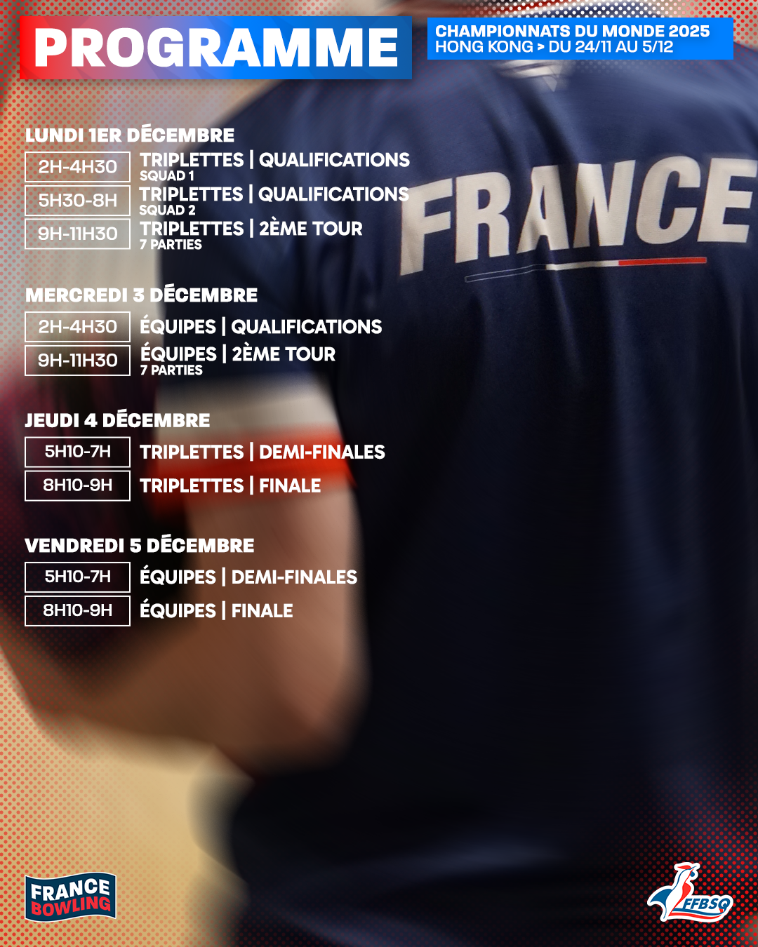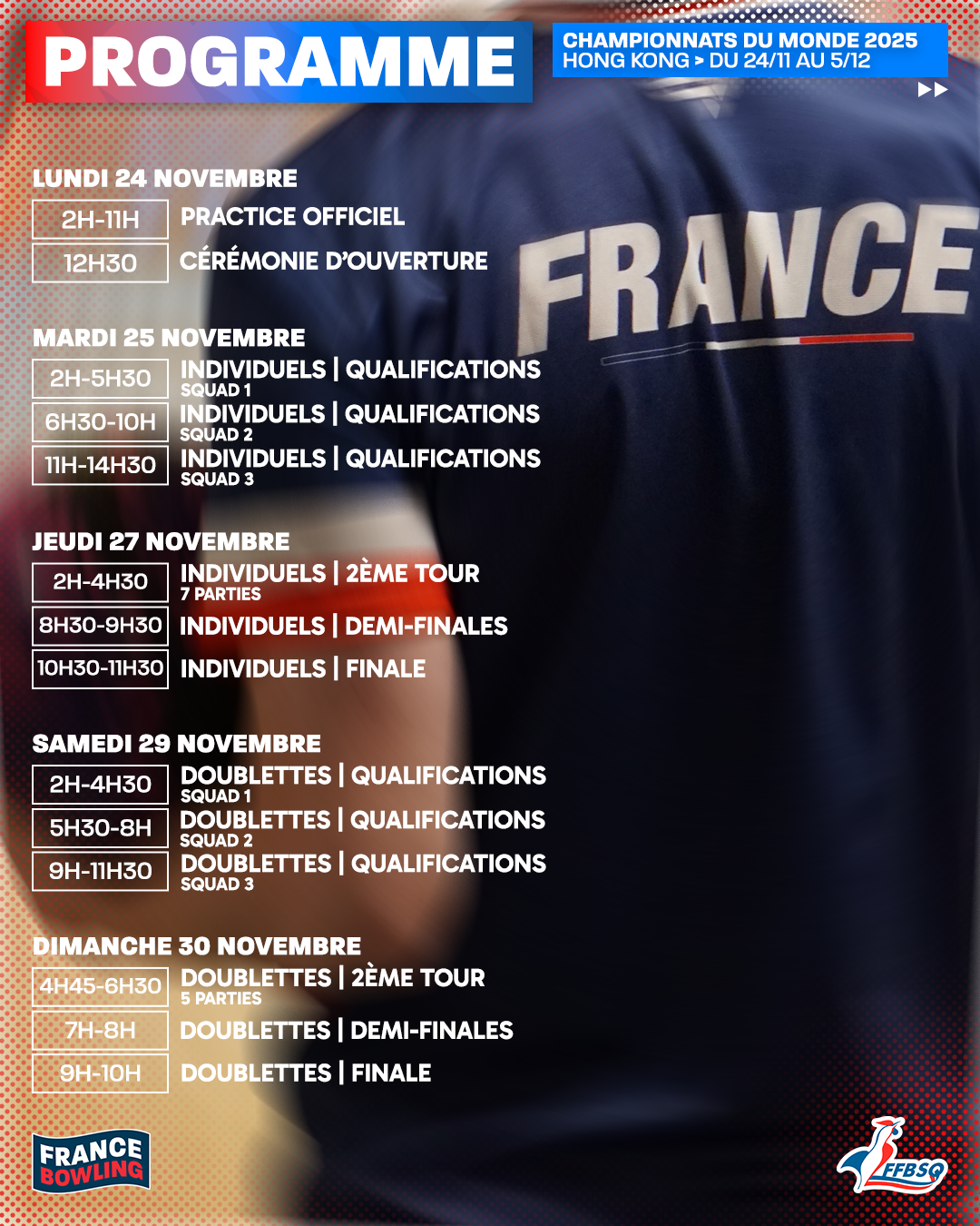 Du 24 novembre au 5 décembre, nos Bleus se rendront à Hong Kong pour les championnats du Monde. Découvrez la sélection ainsi que l'ensemble des informations sur la compétition.