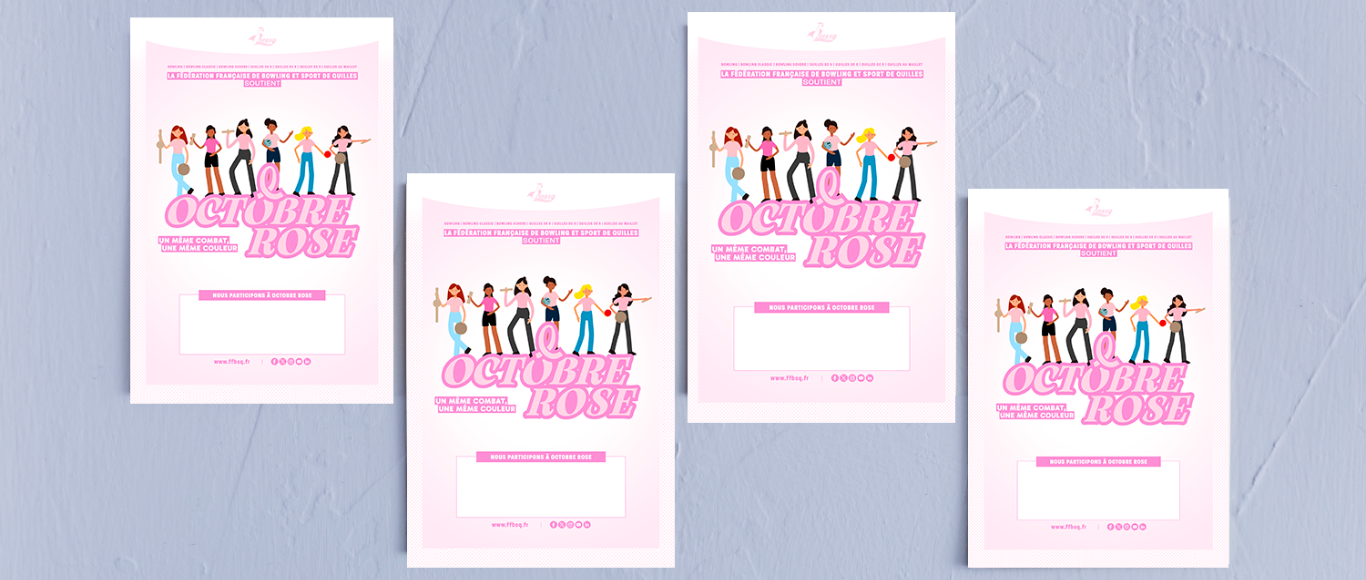 Clubs, CSN, Ligues et Comités : vous pouvez désormais télécharger le kit de communication Octobre Rose de la saison 2025-2026. Les supports rassemblent des affiches au format A3 et A2, des flyers A4 ainsi qu'un visuel pour les écrans (télés, ordinateurs...). Vous retrouverez également des visuels pour les réseaux sociaux. Vous pourrez ainsi faire la promotion de vos actions et de cette campagne de sensibilisation au dépistage du cancer du sein. Chaque support de communication inclut un cadre blanc en bas dans lequel vous pourrez indiquer la date de votre événement et les coordonnées du club.