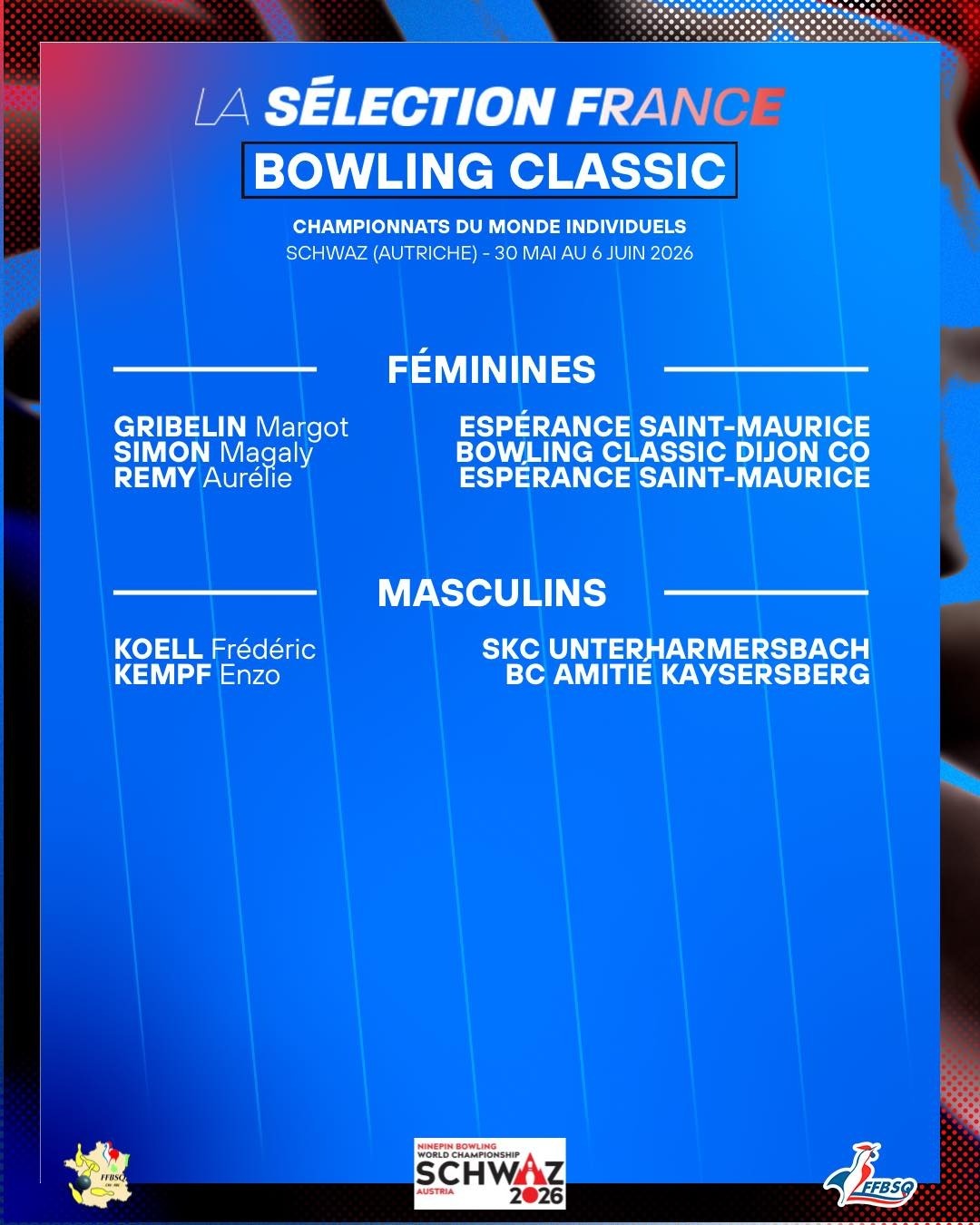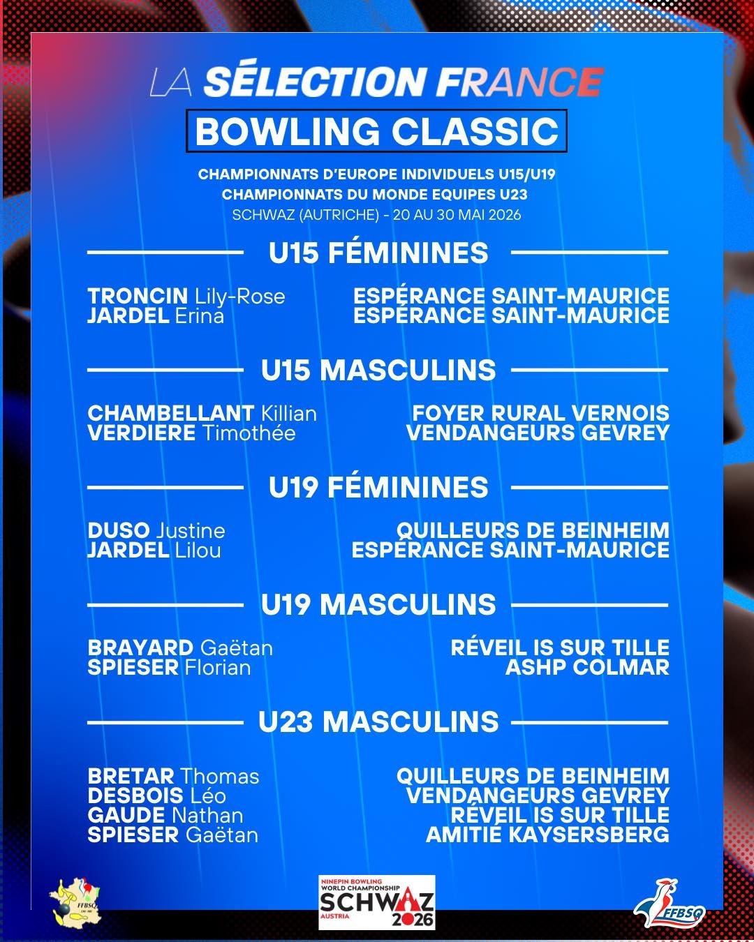 Découvrez les joueurs de l'équipe de France de Classic qui se rendront à Schwaz (Autriche) du 20 mai au 6 juin pour disputer les championnats du Monde Seniors (individuels), les championnats du Monde U23 (équipes) et les championnats d'Europe U15/U19